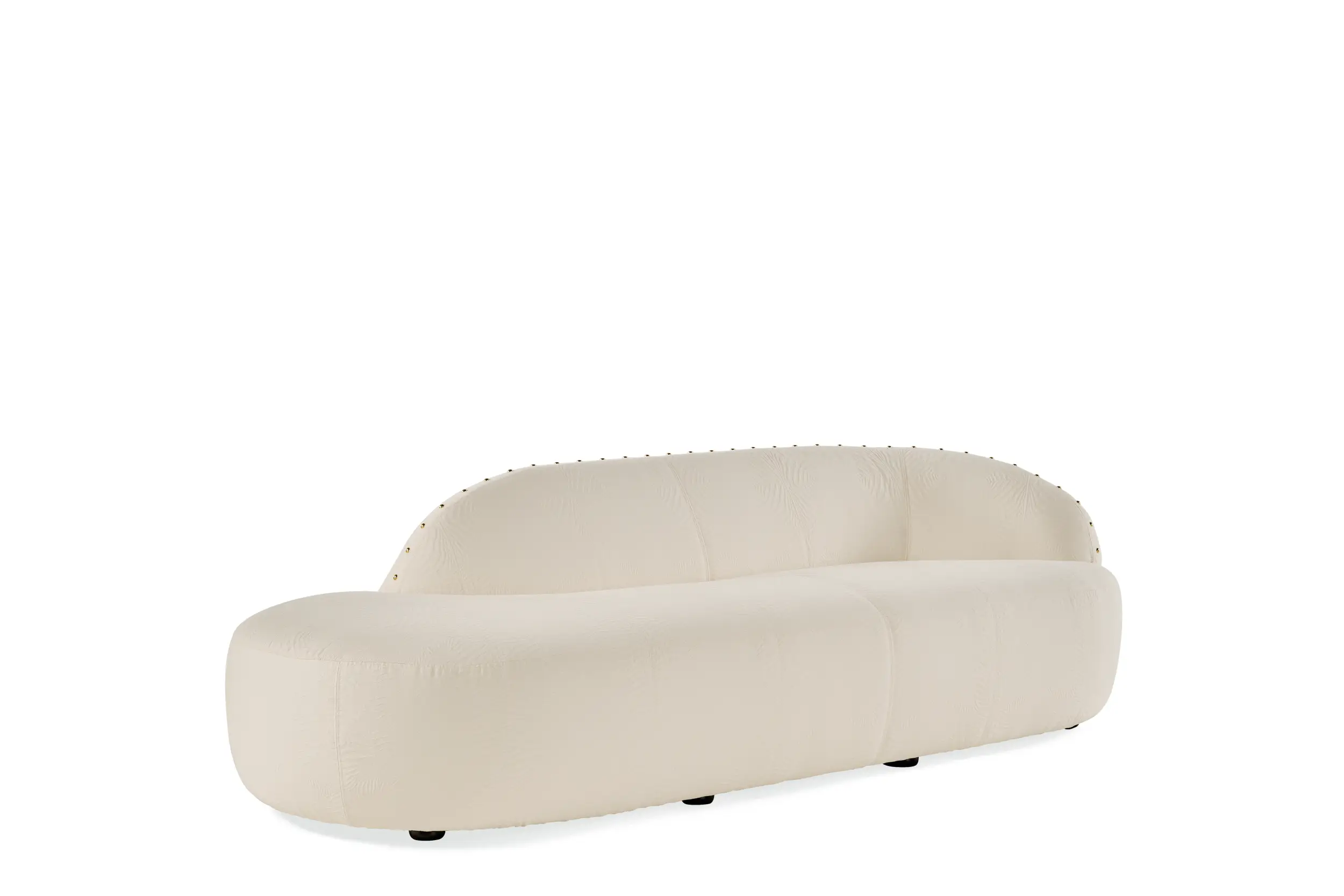 The Elobay sofa, an evolution of the iconic sectional, features a linear design available in 2 or 3 seats. Its soft, embracing curves invite to indulge in relaxation and conviviality. Enhanced by decorative metal studs in a luxurious gold finish, the upholstery comes in warm, textured fabrics or leather from the collection. With its modern silhouette that perfectly balances style and comfort, Elobay embodies the pleasure of living your home to the fullest.