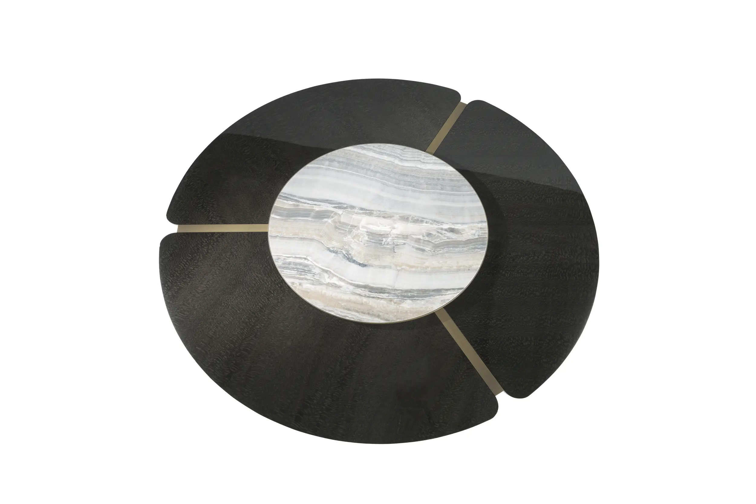 An object with a great personality, blurring the line between art and design: Kibo is a sculptural table of absolute scenic impact. Expression of unparalleled craftsmanship, the table is a combination of materials and shades that gives life to sophisticated plays of light and reflections.